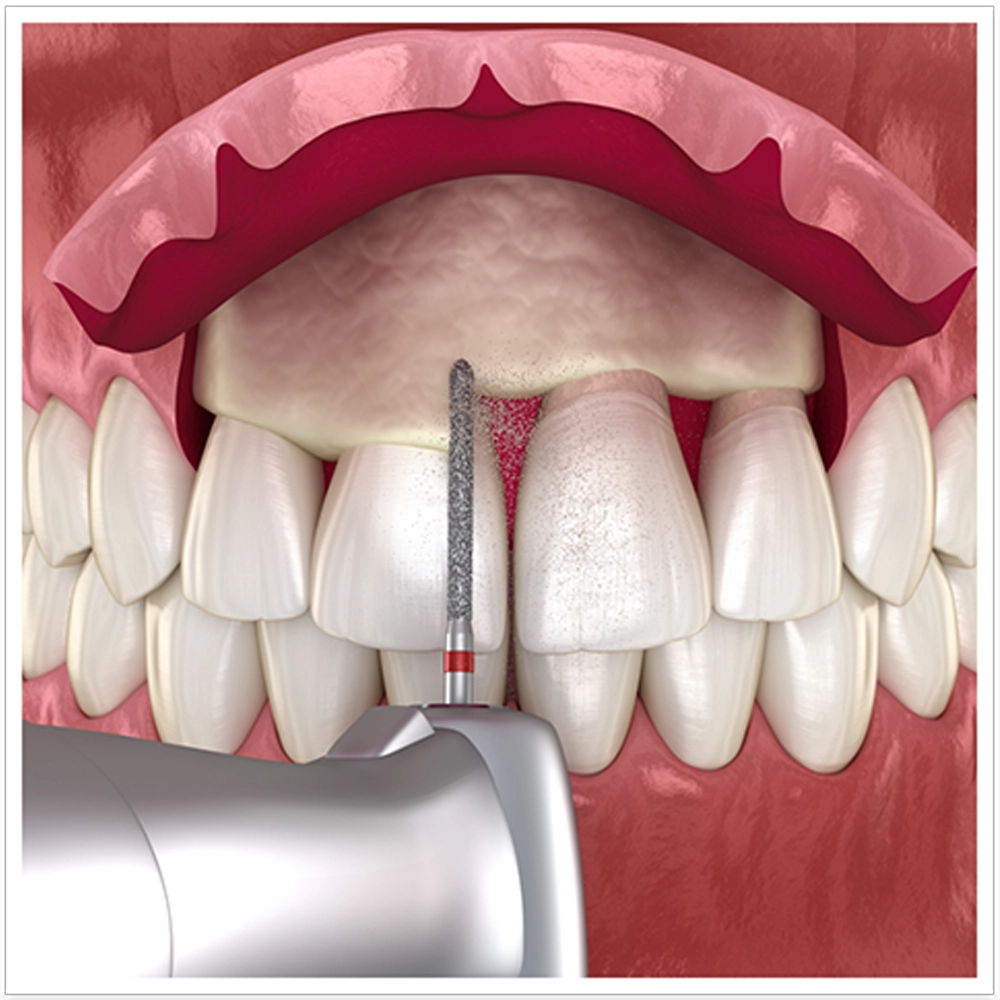 • Procédure : Remodelage des gencives (Gingivoplastie, Gingivectomie).